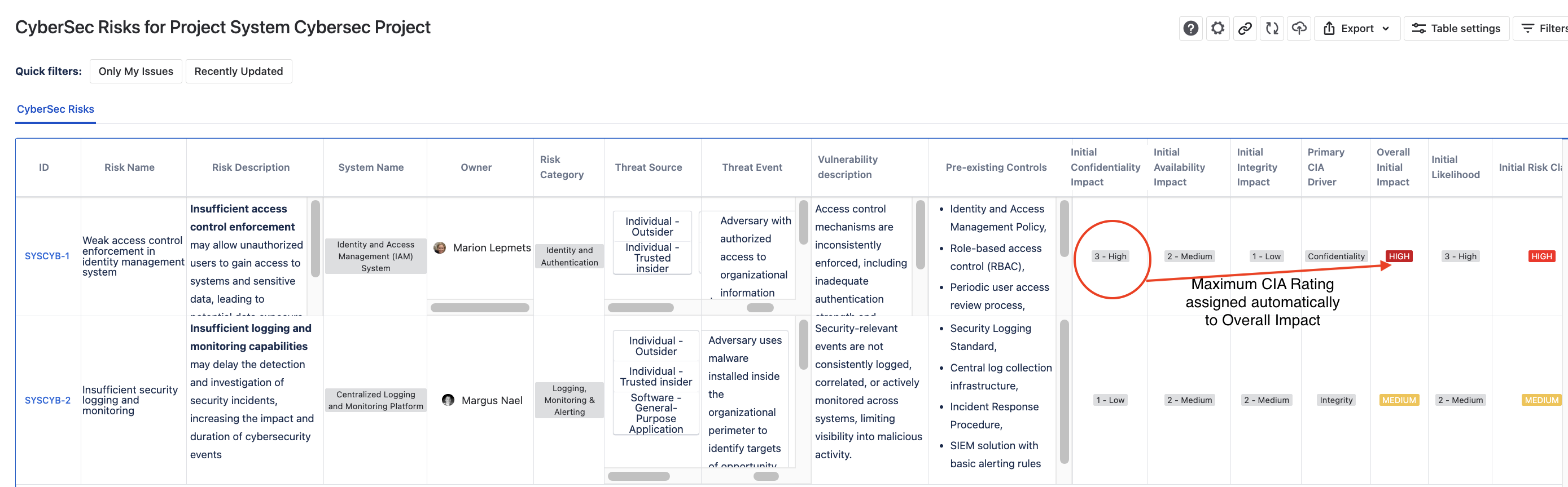 The model automatically assigns the maximum rating from the three of them that will be used on the parent risk model level as the Overall Impact of the risk.